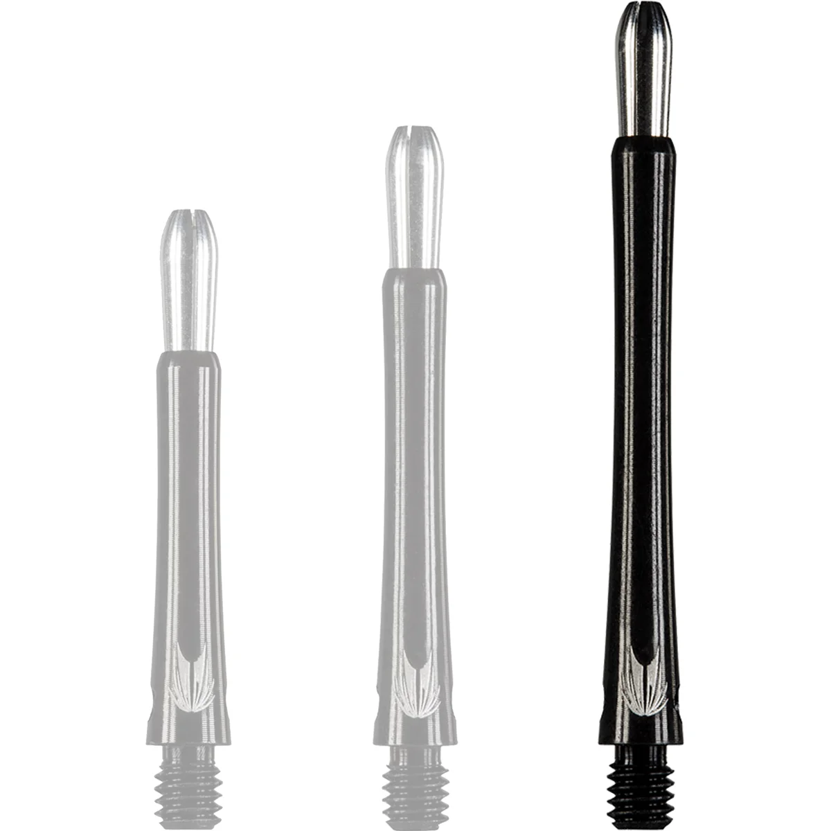 Die Target Grip Style Shafts schwarz aus Aluminium sind die perfekte Kombination aus Stil und Funktionalität. Erhältlich in drei Längen und ausgestattet mit einem 2BA Gewinde, bieten diese Shafts eine hervorragende Passform für Deine Darts.