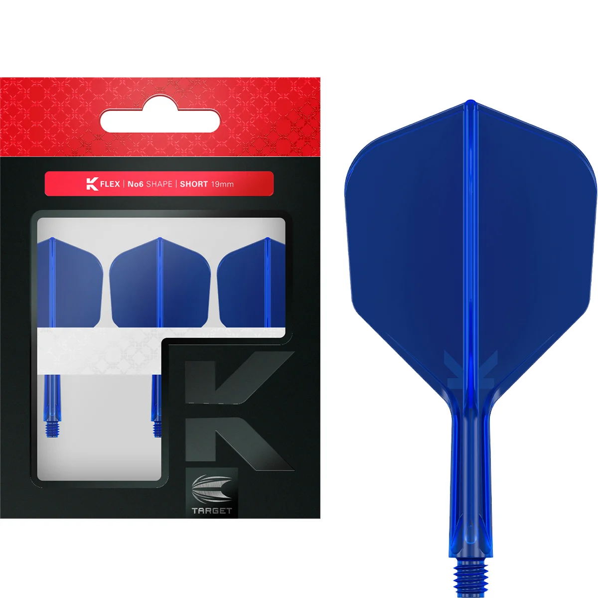 Das Target K-Flex No6 System in Blau steht für Ruhe, Kontrolle und Effizienz im Spiel. Die kompakte No6-Flightform reduziert den Luftwiderstand und sorgt für direktere, stabile Flugbahnen. Das integrierte Flight-&-Shaft-System garantiert eine gleichbleibende Balance, während das patentierte Flex-System Treffer absorbiert und Abpraller minimiert – für absolute Präzision bei jedem Wurf.