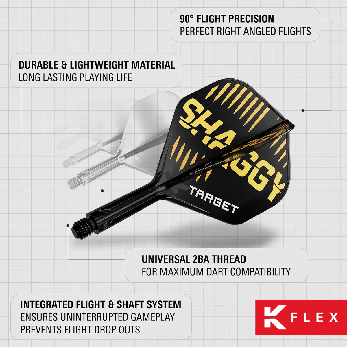 Die Target K-Flex Scott Williams Flights vereinen stylisches Design mit innovativer Technik. Inspiriert vom dynamischen Spielstil des bekannten Profis Scott "Shaggy" Williams, überzeugen diese Flights durch Performance, Haltbarkeit und markantes Aussehen.