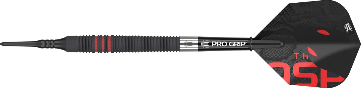 Ausgeliefert werden die Target Nathan Aspinall Black 80% Softdarts mit Target Pro Grip Shafts & Pro Player Standard N°6 Dartflights die gleichzeitig vorgestellt werden. Das angegebene Gewicht von 18 gramm bezieht sich auf den komplett montierten Dartpfeil.