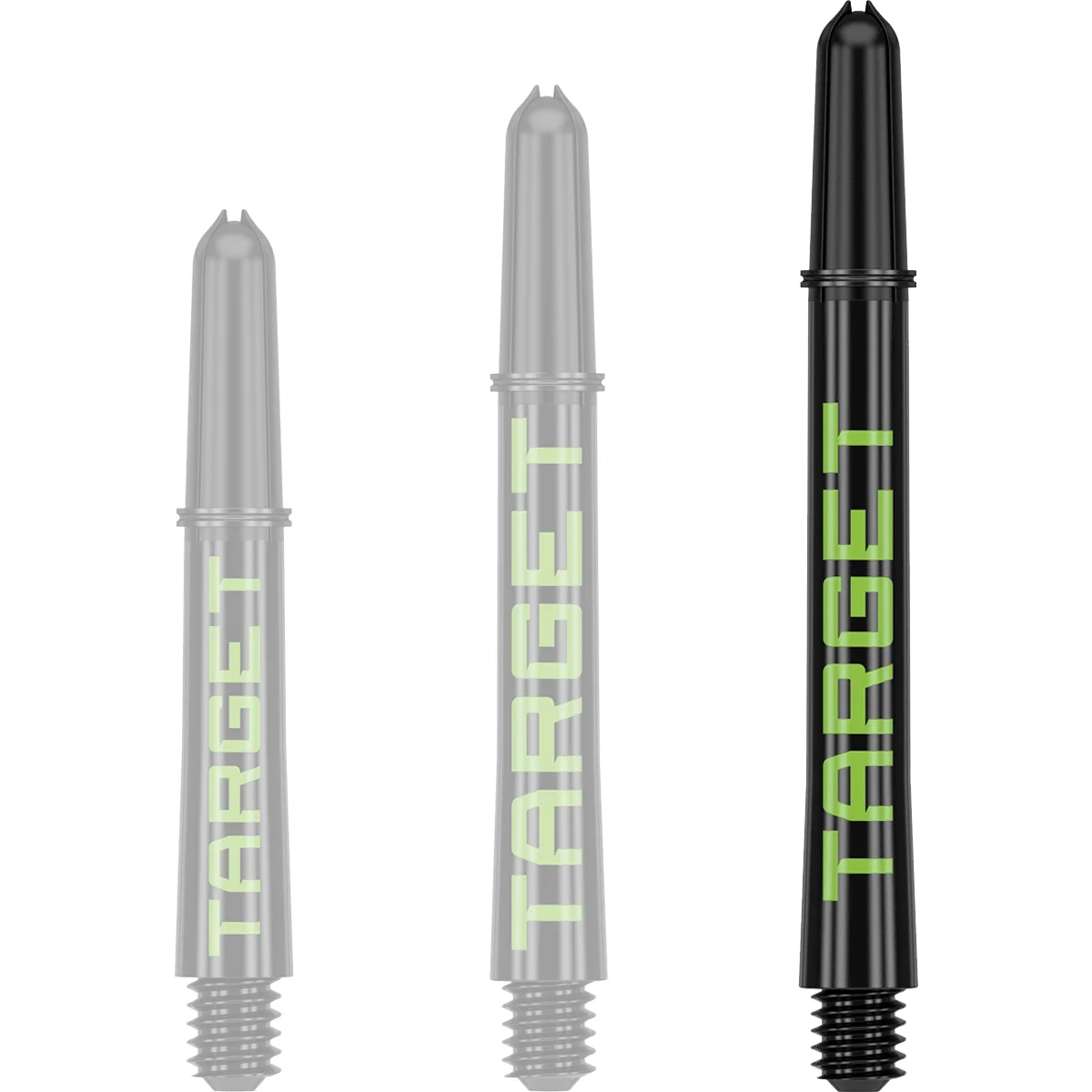 Target Pro Grip TAG Shafts schwarz mit grünem Target Aufdruck. Übliches 2BA Gewinde und gewohnte Pro Grip Qualität.