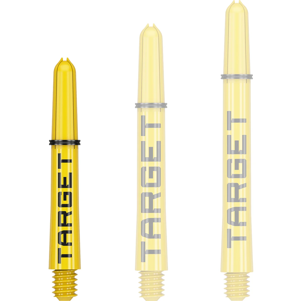 Target Pro Grip TAG Shafts yellow mit schwarzem Target Aufdruck. Übliches 2BA Gewinde und gewohnte Pro Grip Qualität.