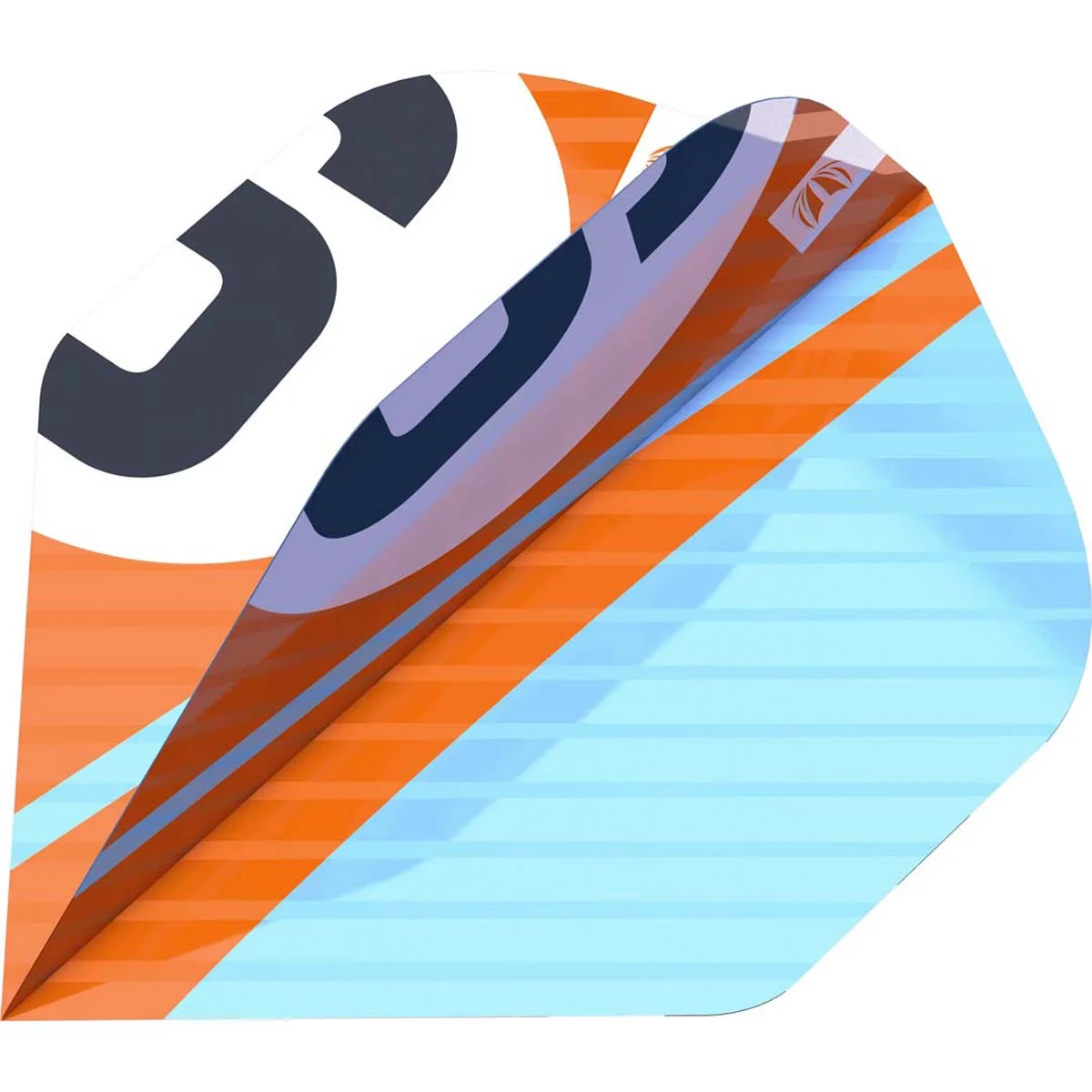 100 Mikron starke Target Pro Ultra Chicane Flights in der klassischen Standard Form N°2 mit einem abstrakten, orangen Motiv als 3-Pack Set.