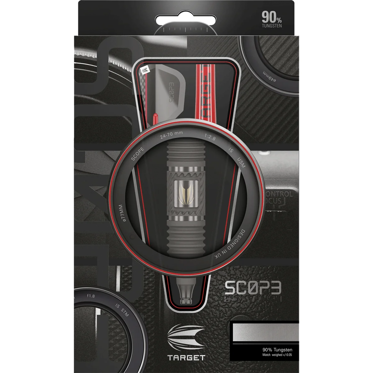 Das Barrel besticht durch ein edles, schwarz sandgestrahltes Finish mit eingraviertem Target Logo. Dank der geraden Form eignet sich der Scope 10 Dart ideal für Spieler, die Wert auf ein ausgewogenes Handling legen.