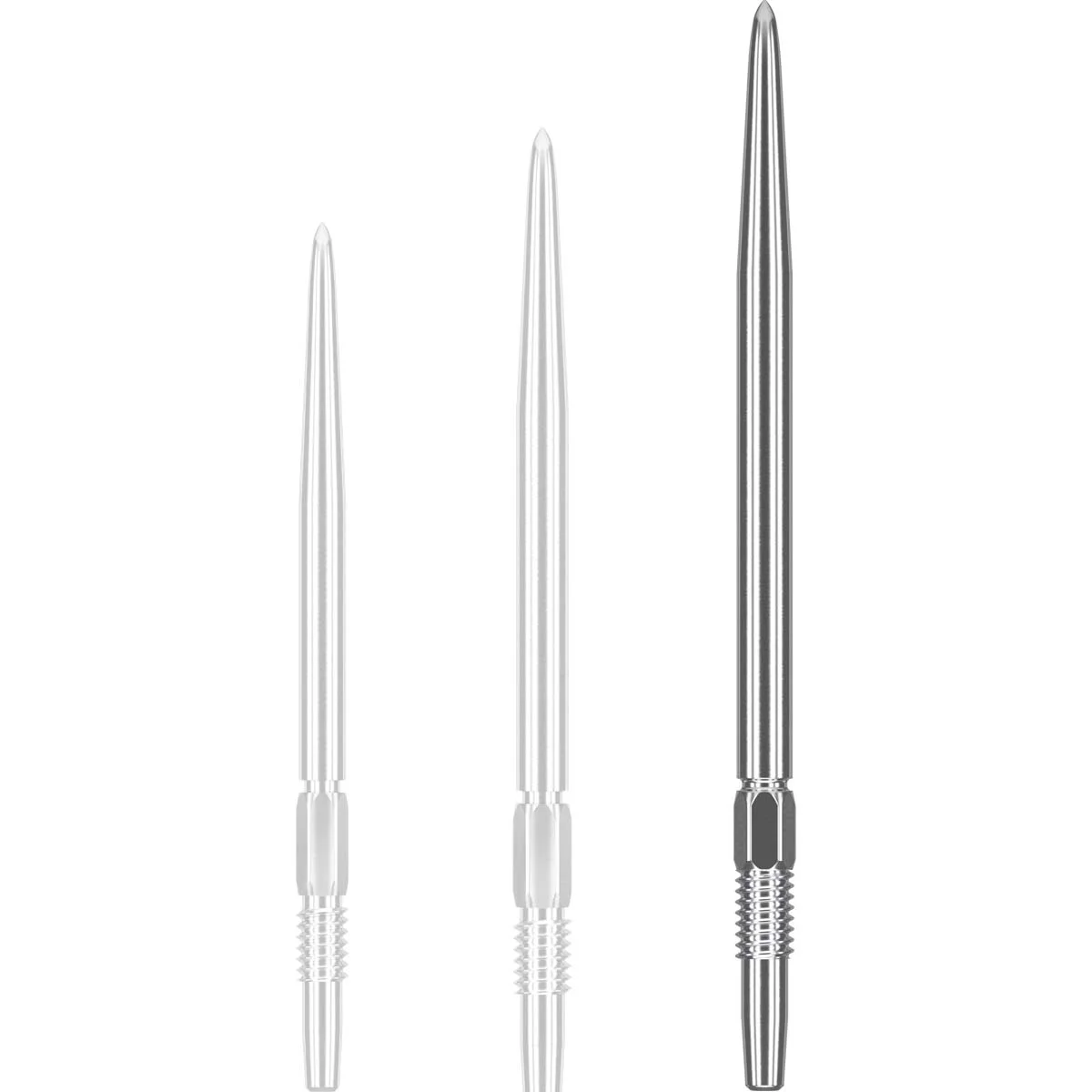 Die Target Swiss Point Smooth Spitzen sind in 26 mm, 30 mm und 35 mm erhältlich. Die Längenangabe bezieht sich jeweils auf die reine Spitzenlänge ohne Swiss-Point-Gewinde.