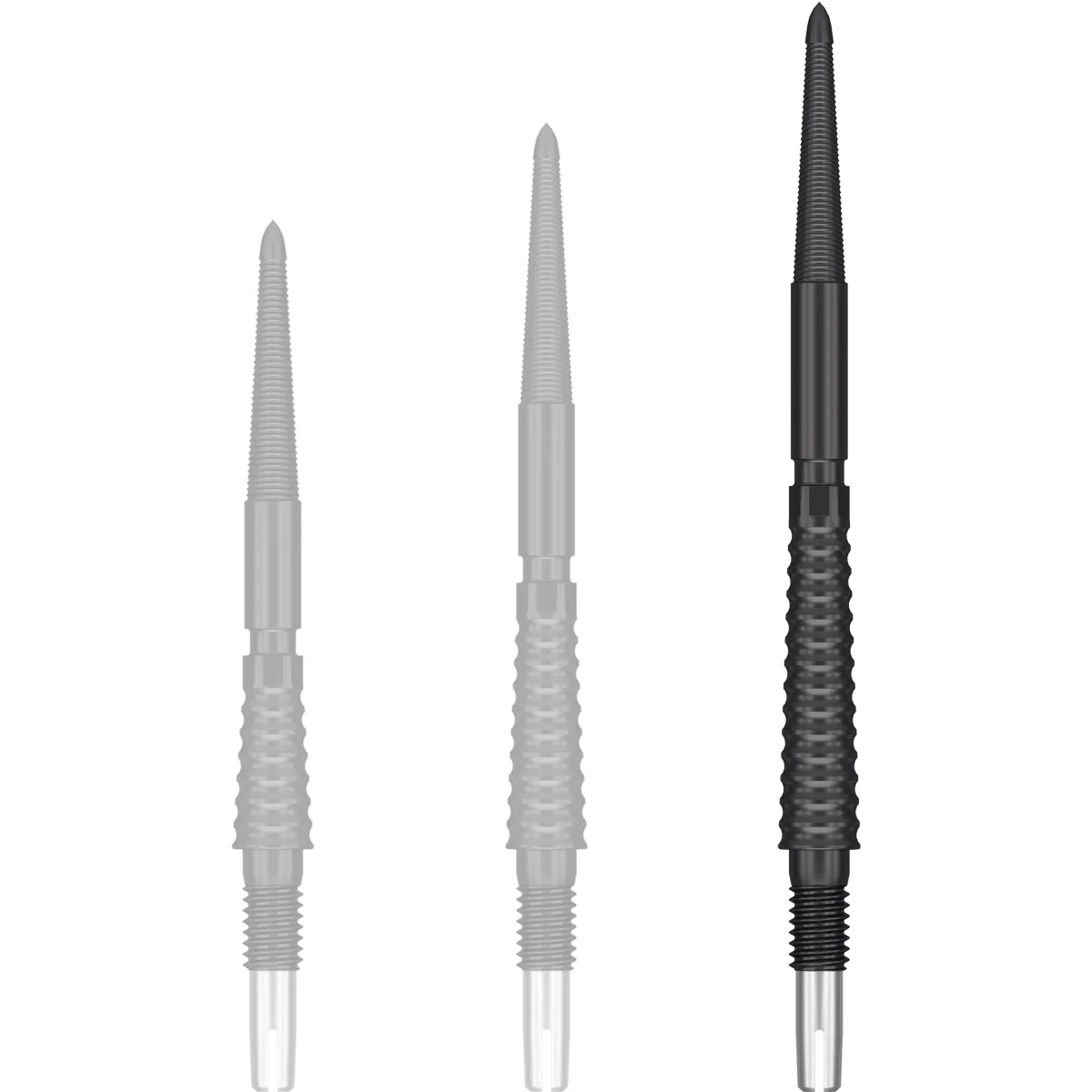 Die schwarzen Swiss Point Storm LNC Steeldartspitzen bieten einen angenehmen Fingergrip für Spieler die einen Finger auf die Spitze legen und einen feinen Boardgrip der für sicheren Halt im Dartboard sorgt ohne dieses zu beschädigen. Die Dartspitze wird zum Ende hin ein wenig dicker und sorgt für einen optimalen Übergang und weniger Bouncer.