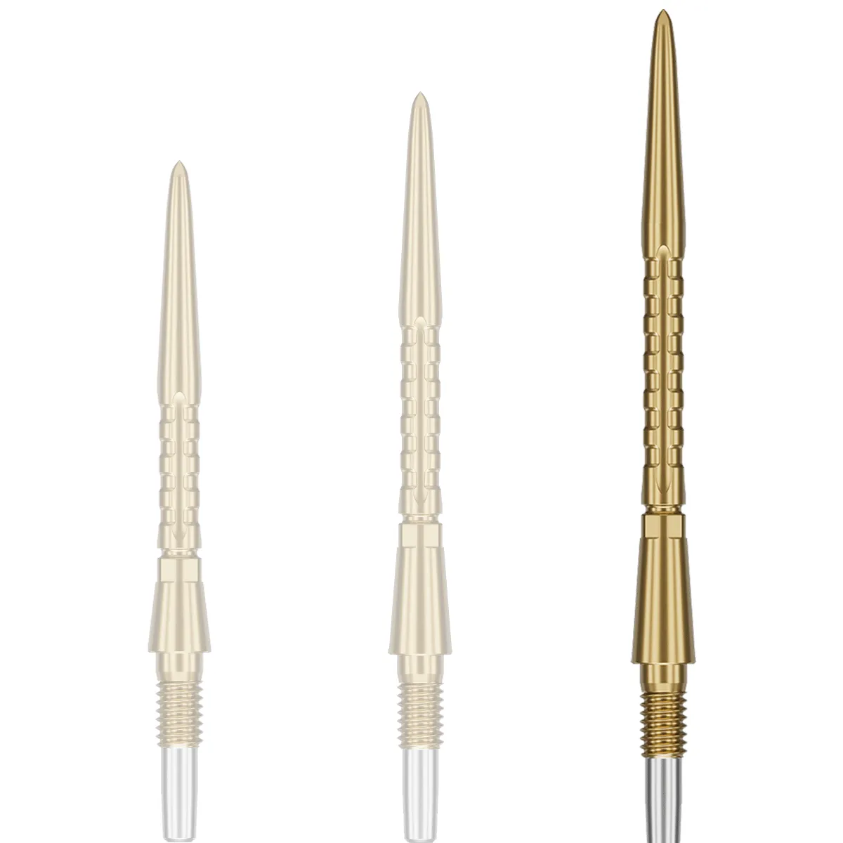 Die Target Swiss Point Storm Surge Dartspitzen in Gold bieten dir zusätzlichen Fingergrip durch mittig platzierte Axial-Rillen. Dank des innovativen Swiss Point System kannst du die Spitzenlänge, den Stil und die Farbe in Sekundenschnelle wechseln – ohne großen Aufwand.