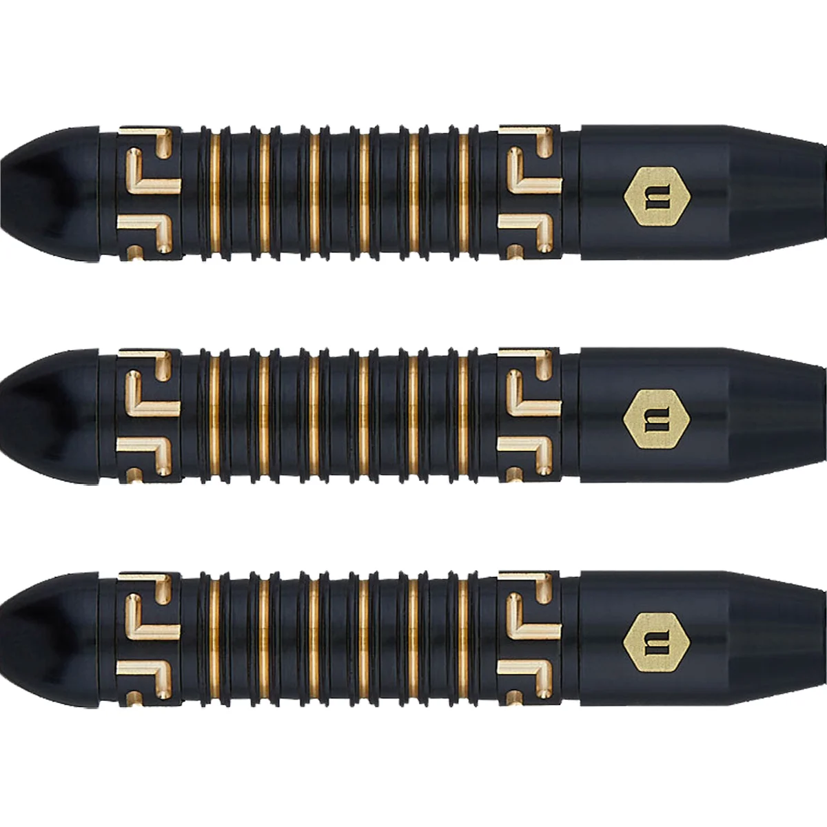 Der edle schwarze Dart mit feinen goldenen Linien ist in vier einzigartigen Versionen und verschiedenen Gewichtsklassen erhältlich.