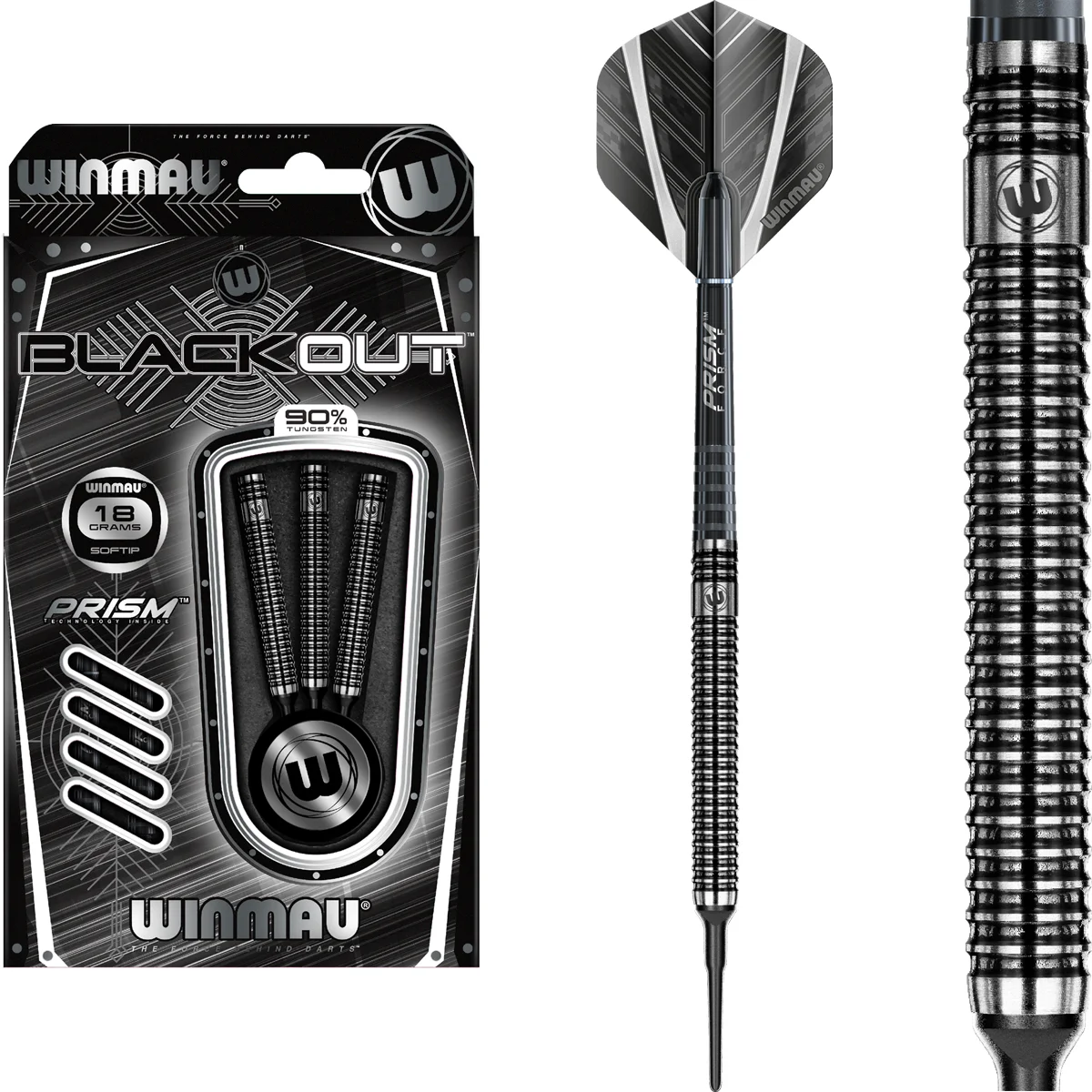 Die Winmau Blackout Softdarts, wahlweise in 18 oder 20 Gramm erhältlich, sind die Essenz der Präzision und bieten ein hochwertiges Dartspielerlebnis. Hergestellt aus 90% Tungsten, zeichnen sich diese Darts durch einen durchgehenden Ringedgrip aus, der eine außergewöhnliche Kontrolle über den Dart gewährleistet.