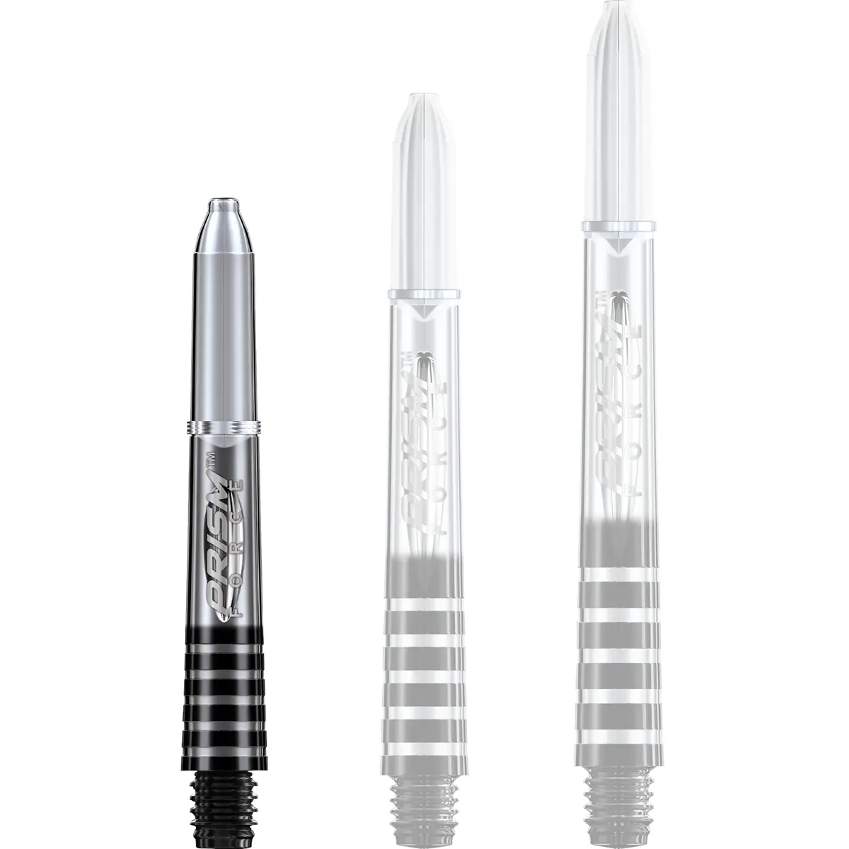 Winmau Prism Force Shafts in Klar, jetzt auch als praktische Midi-Version zwischen Short und Medium erhältlich.