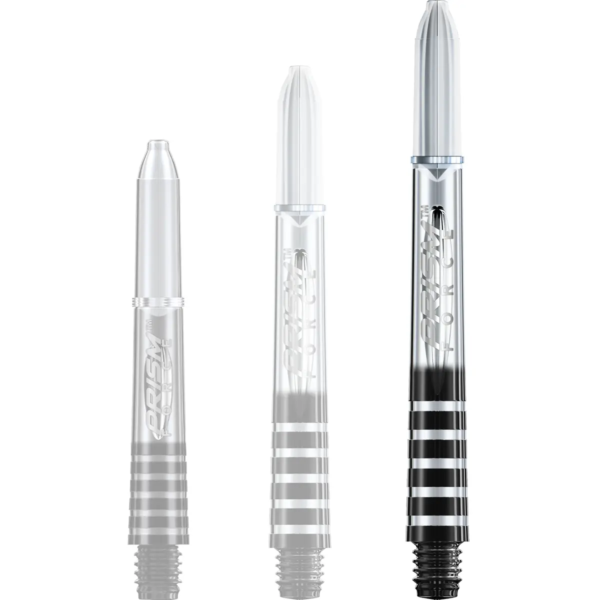 Winmau Prism Force Shafts in Klar, jetzt auch als praktische Midi-Version zwischen Short und Medium erhältlich.
