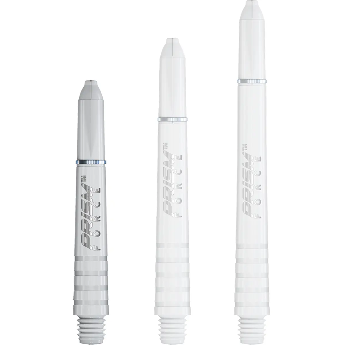 Winmau Prism Force Shafts in Weiß, jetzt auch als praktische Midi-Version zwischen Short und Medium erhältlich.