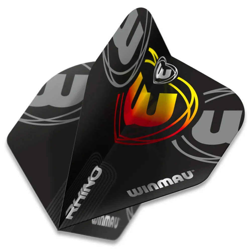 Die neuen Winmau Rhino Flights gibt es in zwei verschiedenen Typen. Bei den Grey Modellen ist aufgedruckte Winmau Logo an den äußeren Seiten grau gehalten während es bei den Black Flights farbig ist und von links nach rechts einen eleganten Farbverlauf zeigt.