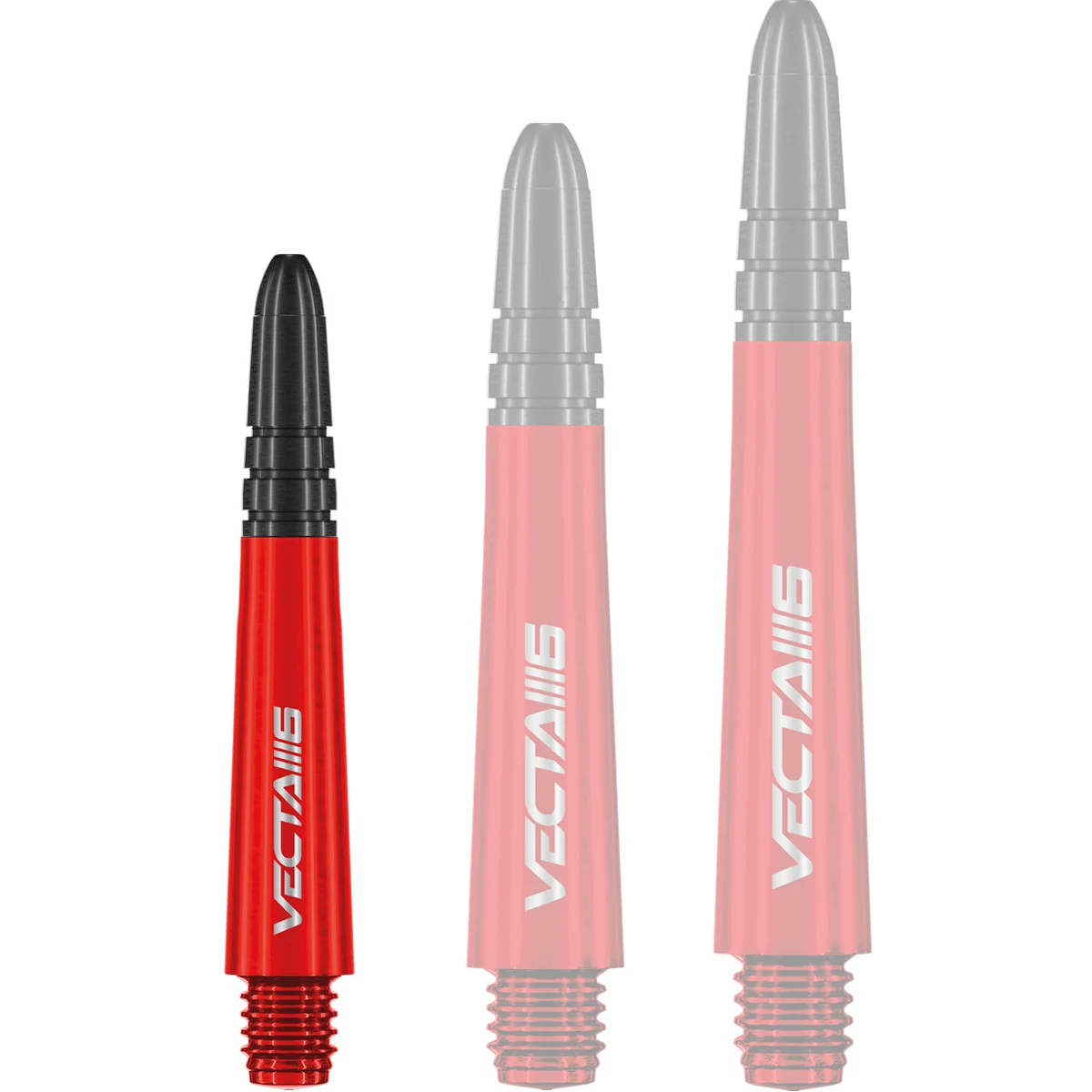 Die Winmau Vecta Shafts sind im Blade 6 Design erhältlich und bieten drei verschiedene Längenoptionen: 34, 37 und 40 Millimeter. Dank des gängigen 2BA-Gewindes passen diese Kombishafts auf alle herkömmlichen Steel- und Softdarts. Das schicke Blade Design in elegantem Rot mit silberner Aufschrift und der auffälligen schwarzen Flightaufnahme verleiht den Shafts nicht nur einen modernen Look, sondern stellt auch ein echtes optisches Highlight dar.